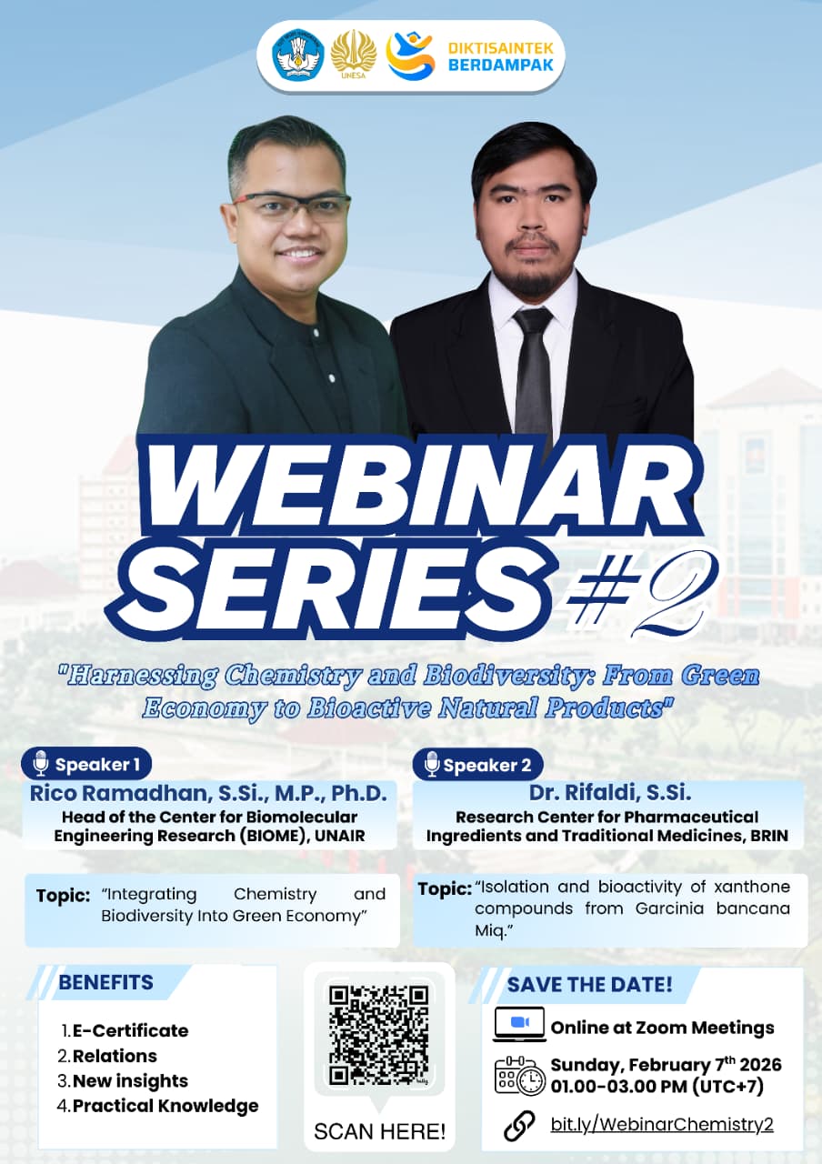 📢 Webinar Series #1: “Environmental Chemistry”Hello everyone,We are pleased to invite you to Webinar Series #1 with the theme Environmental Chemistry, featuring two talks on e